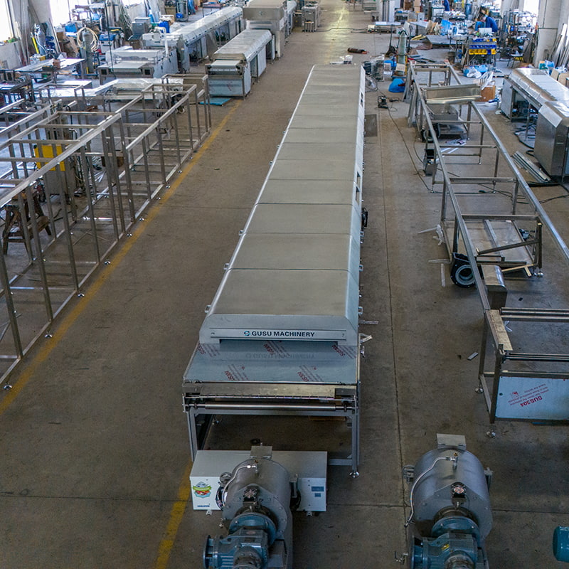 Gusu Food Processing Machinery Suzhou Co.,Ltd. is a high-tech enterprise integrating R&D, manufacturing, production, sales and after-sales. Since 1969, focusing on the development and production of chocolate complete equipment and automatic energy bar production line, is China's first manufacturing chocolate complete equipment enterprises, according to customer needs, to provide a complete set of chocolate equipment solutions. Known as the "mother of China chocolate" in the industry, High-efficiency cooling Automated operation Cooling Tunnel Manufacturers.